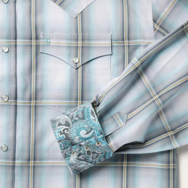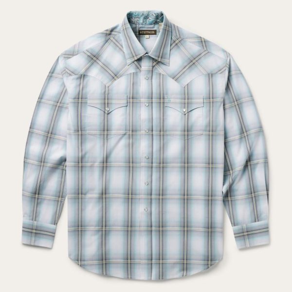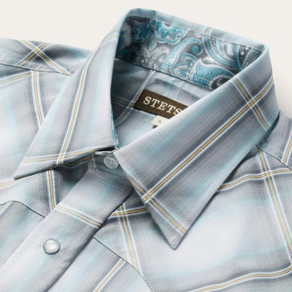 Men Western Shirts | Stetson Grey Sky Ombre Plaid Western Shirt Grey