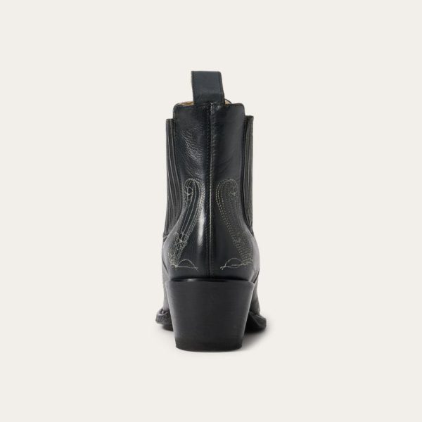 These metro toe shorty boots are handcrafted from high-quality black leather, with a 5″ elastic shaft. The vamp features a stunning, vintage-style, Western-inspired embroidered detail. Their single stitched welt design features a stacked leather heel, lemonwood pegs, brass nail construction, a stylish snip toe and an all leather sole. The cushioned insole and all-leather lining ensure comfort and a perfect fit.
